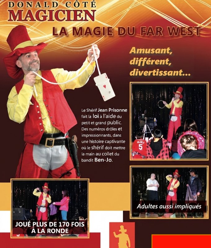 Le spectacle comprend des trames sonores classiques de films de cowboys et Donald incarne le personnage du shérif Jean Prisonne qui prend les jeunes spectateurs pour des villageois.Tout au long du spectacle, Jean Prisonne demande l’aide des enfants pour attraper un lapin bandit. Il aura besoin d’un assistant shérif et un des villageois (enfant) devra passer un test magique.