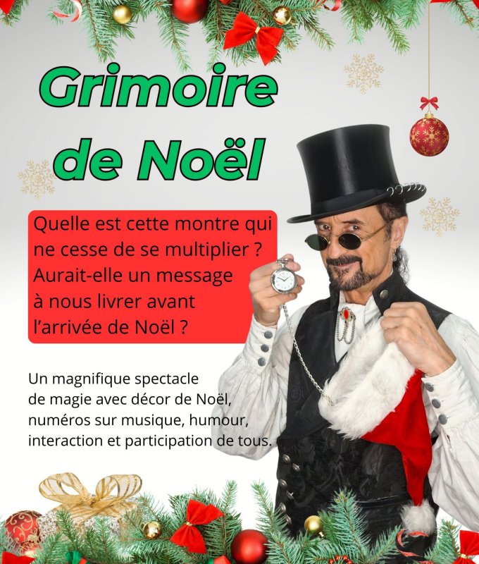 Mais quelle est donc cette montre qui ne cesse de se multiplier ? Aurait-elle un message à transmettre au magicien Loran, qui tente de faire apparaître des cadeaux pour sa famille avec son "Grimoire de Noël". Il faut faire vite et le temps presse car Noël approche. Le magicien Loran vous présente un spectacle coloré, rempli d’effets de magie très visuels avec des numéros chorégraphiés sur musique, de l’humour et la participation de tout l’auditoire.
